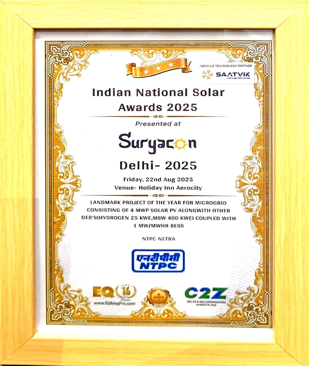 NETRA was conferred with the Indian National Solar Award 2025, at a ceremony organized on 22nd August by EQMagPro.