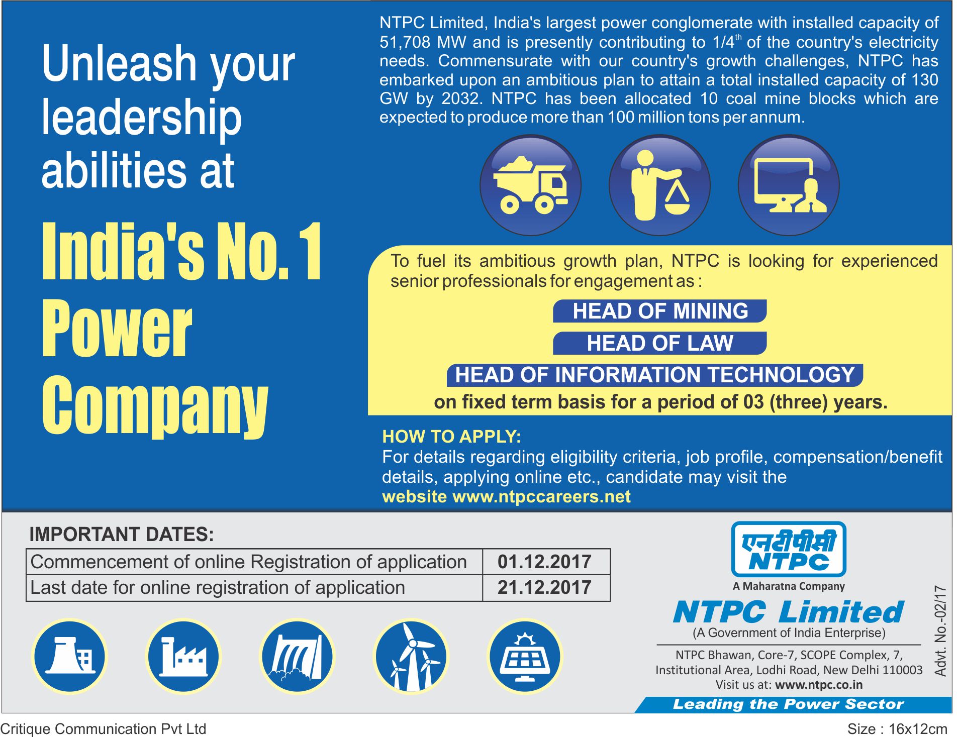Advertisements Files Unleash your leadership abilities at India's No.1 Power Company (439.74 KB) Media Publishing Date 2018-03-05