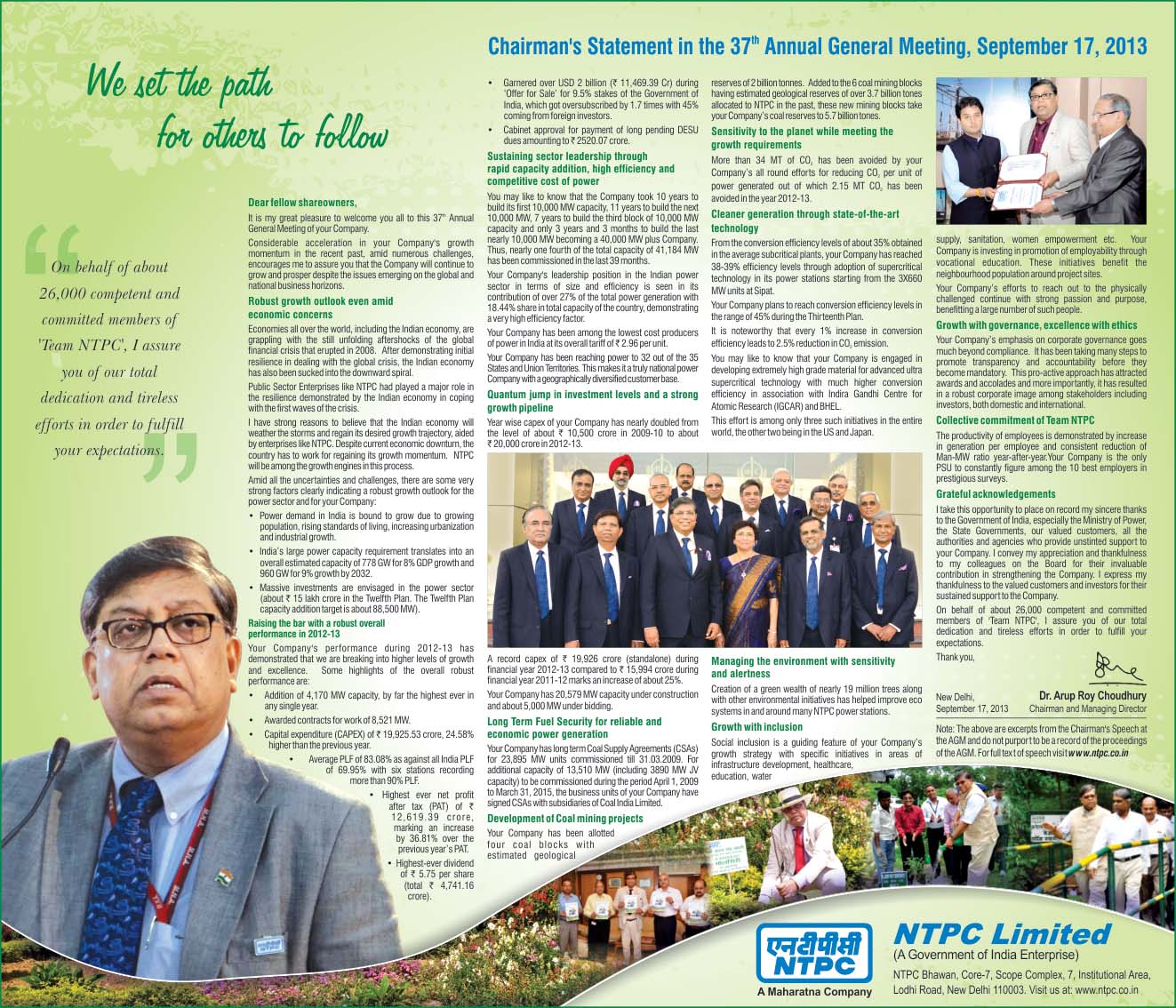- Chairman's Statement Ad of 37th AGM (Hindi) at Sept, 2013