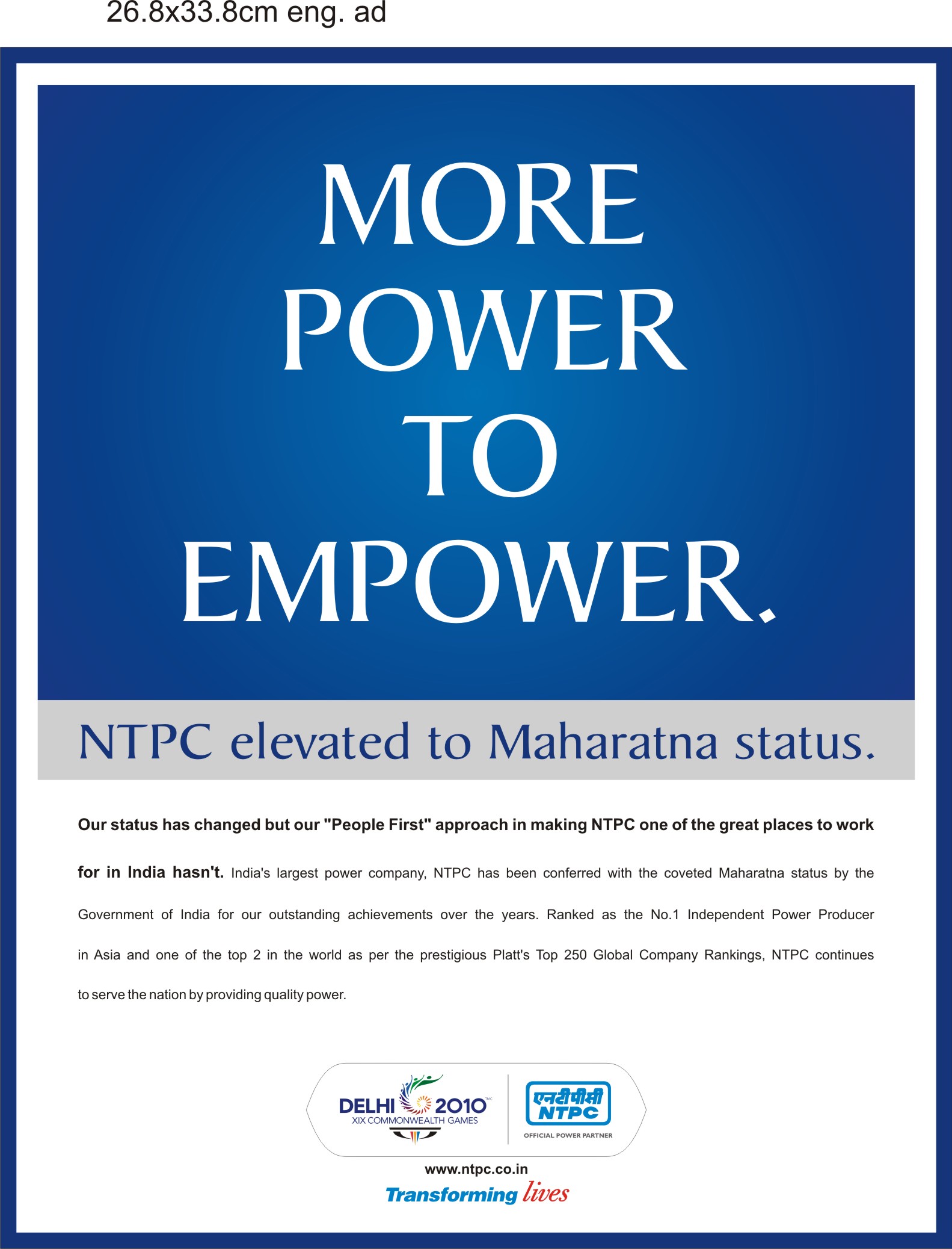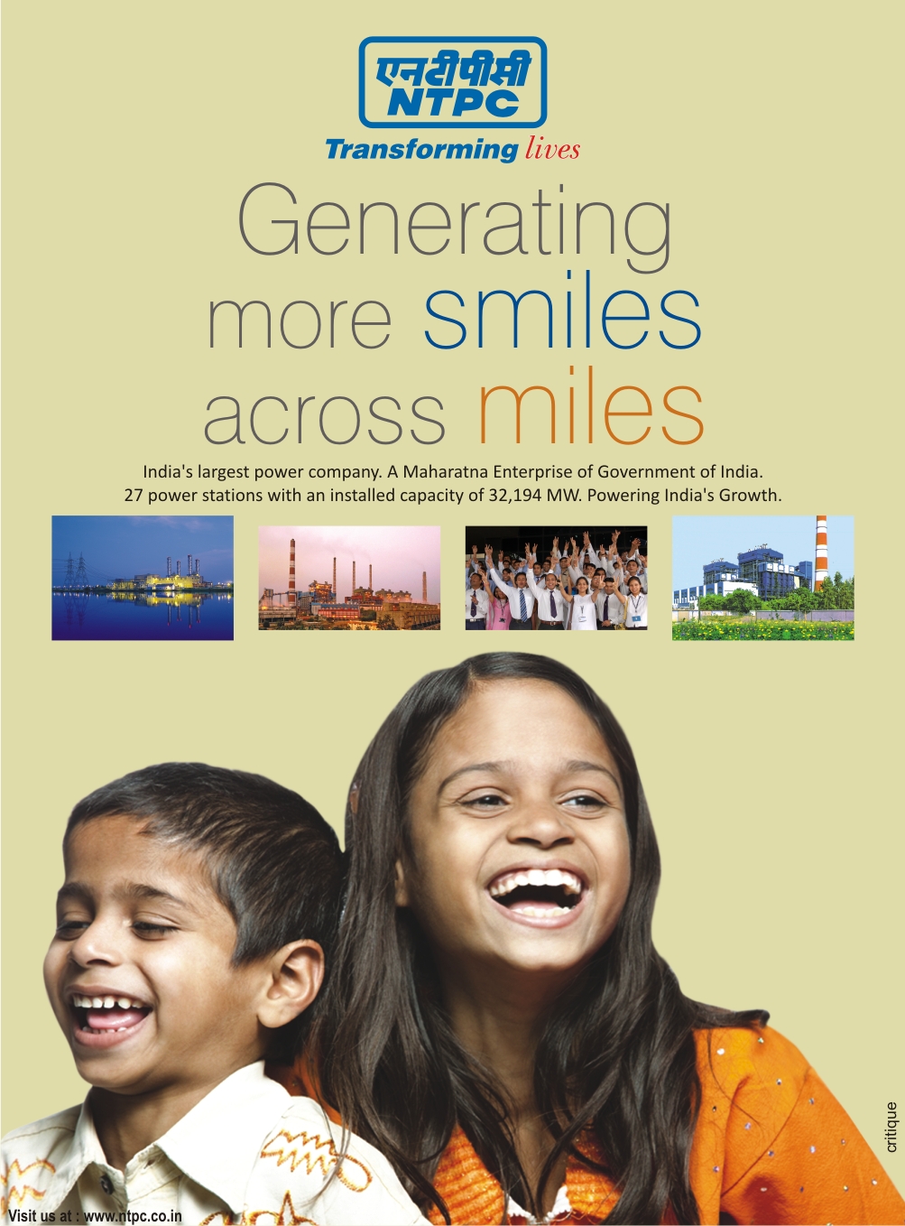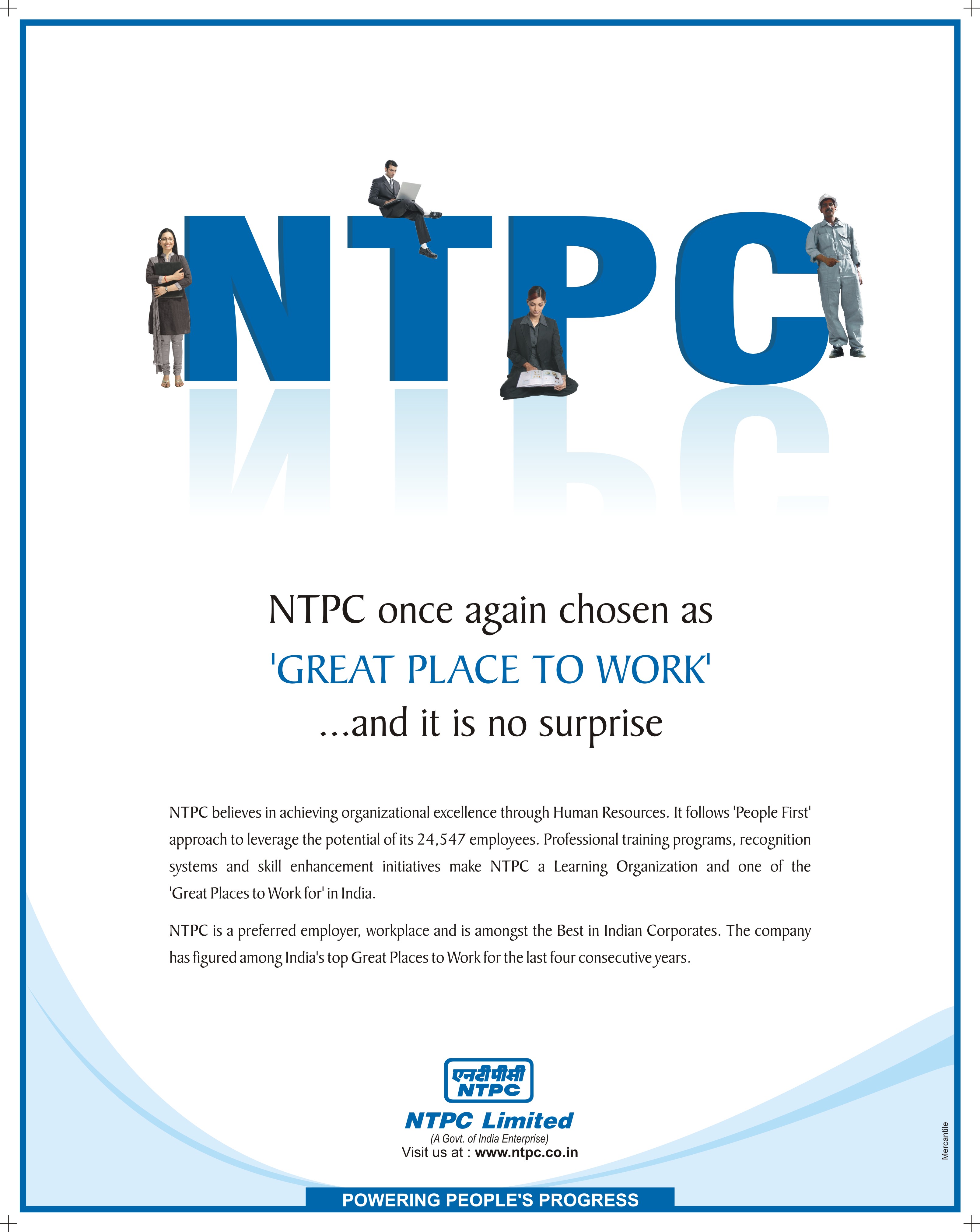 - Advertisement for "NTPC once again chosen as Great Place to Work"